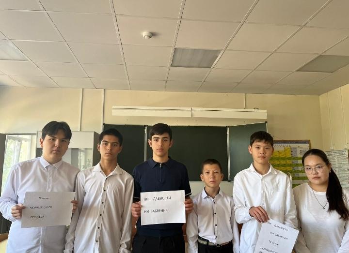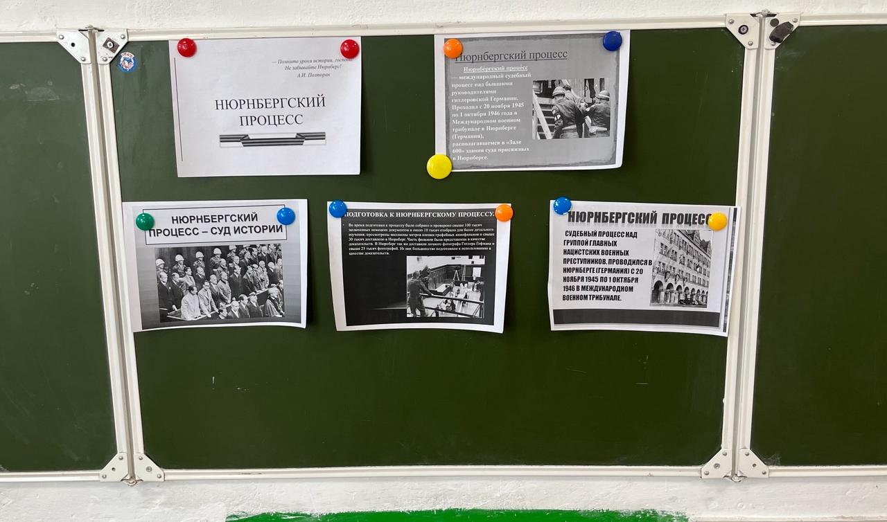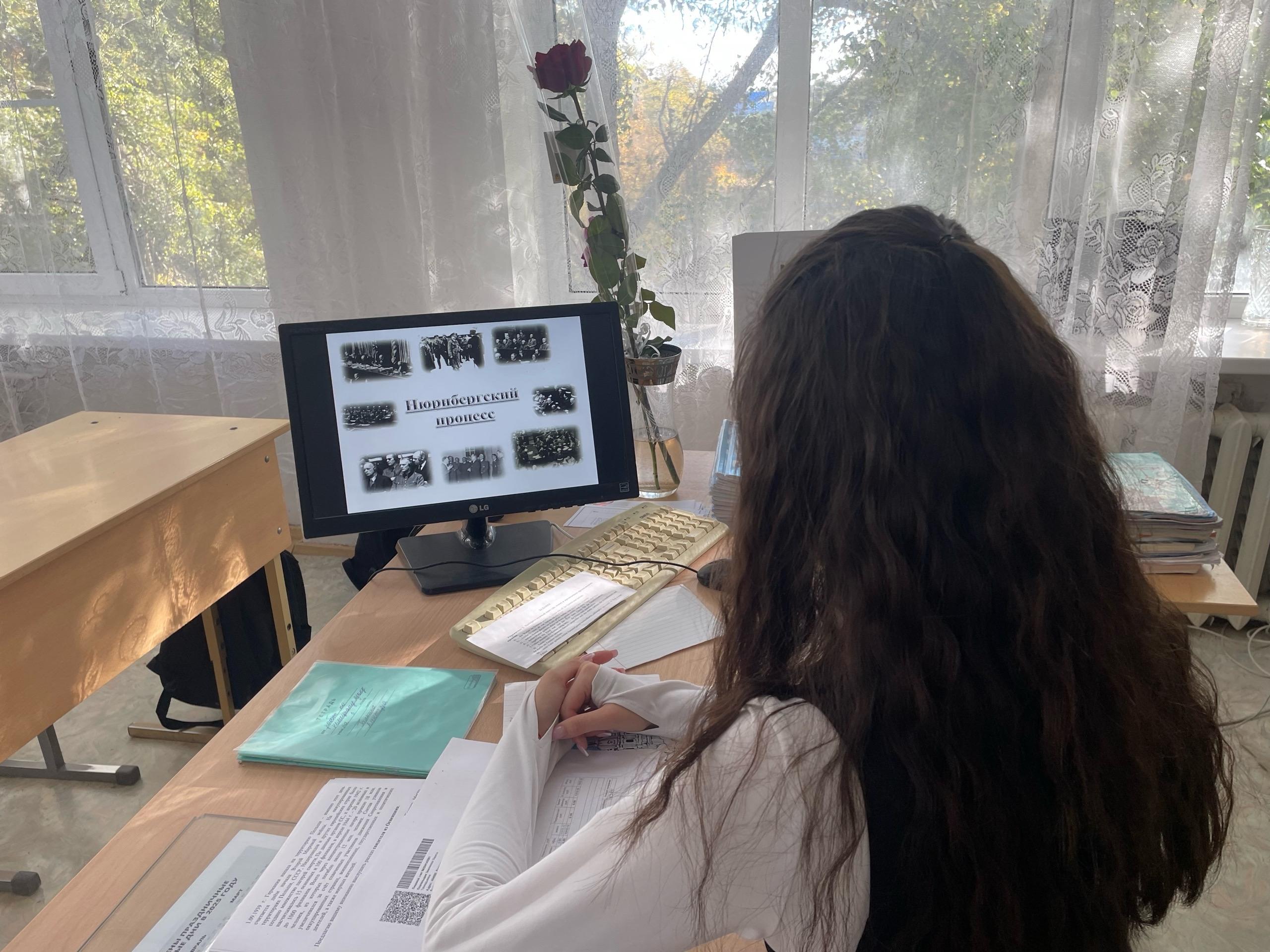 В ходе классного часа вниманию обучающихся была представлена презентация «Нюрнбергский процесс- нет срока давности». Они увидели кадры кинохроники с этого судьбоносного события и узнали о «Суде истории», на котором были вынесены обвинения главным нацистским преступникам, участвовавшим в преступлениях против мира, человечности
